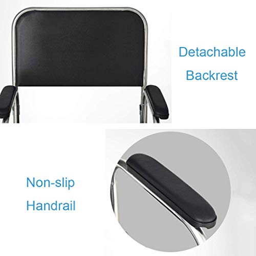 Chaise de douche de haute qualité : siège rembourré en cuir synthétique confortable, trou rembourré amovible au milieu du coussin de siège. Et il y a un seau amovible sous le coussin de siège, ce qui est pratique pour les personnes âgées et les patients pour déféquer.