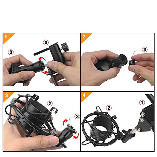 PLUG AND PLAY DEVICES.WITH NO- SWITCH DESIGN.the whole body; using the purity tempered copper to build the net hood.The microphone is used correctly Normally the microphone with the is the frontfor the correct pickup source.The best pickup distance is less than 10cm and the farther the distance is the smaller the sound is.How to use the metal shock mount when installing the microphone first opening the shock mount gap you can easily put into the microphone.