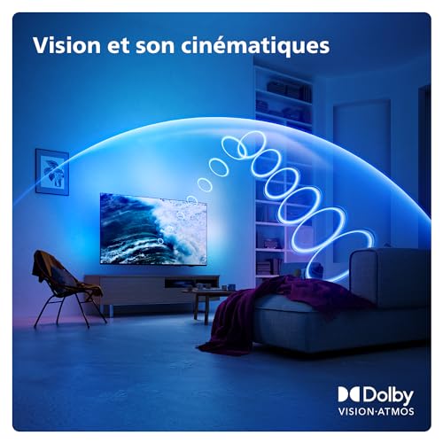 AMBILIGHT TV : les seuls téléviseurs dotés de lumières LED intégrées à l’arrière qui réagissent à l’image, vous plongeant dans un halo de lumière colorée. Cela change tout : le téléviseur semble plus grand pour une immersion plus profonde.
