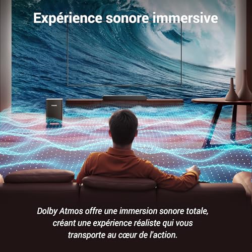 Découvrez la magie du Dolby Atmos : Cette barre de son 2.1 puissante pour smart TV offre une puissance maximale de 160W et compatible Dolby Atmos. La technologie Dolby Atmos utilise l’audio basé sur les objets pour créer une expérience sonore tridimensionnelle immersive qui sublime vos films. Branchez-la simplement à votre TV via HDMI eARC et laissez-vous envelopper par le son Dolby Atmos qui remplit votre espace !